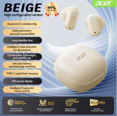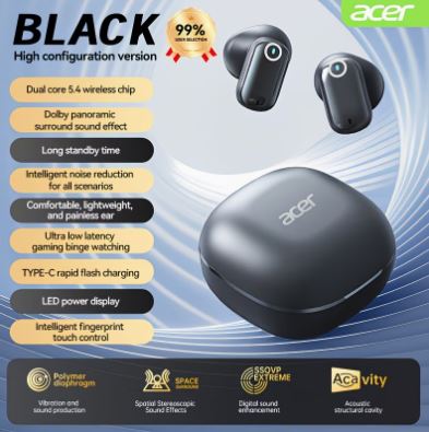 Livraison gratuiteÉcouteurs sans fil Acer, Casque stéréo sans fil 5.4 avec basses, Écouteurs avec microphone à réduction de bruit et écran LED, Écouteurs intra-auriculaires, Contrôle tactile, Convient pour ordinateur portable, tablette, téléphone portable, exercice, Cadeaux de Noël, Écouteurs pour couples
